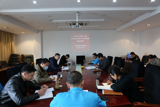 11月15日上午,我公司召開黨委理論中心組學(xué)習(xí)會(huì),專題學(xué)習(xí)中國(guó)共產(chǎn)黨第十九屆中央委員會(huì)第六次全會(huì)精神。會(huì)議由公司黨委書記、董事長(zhǎng)、總經(jīng)理朱桂玉主持,公司黨委班子及其他黨委理論中心組成員參加了學(xué)習(xí)會(huì)。