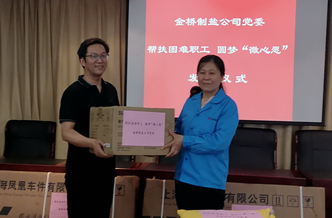 7月8日下午,公司黨委在三樓會(huì)議室舉行“幫扶困難職工 圓夢微心愿”發(fā)放儀式。公司黨委書記、董事長、總經(jīng)理朱桂玉和公司黨委副書記、工會(huì)主席曹開明為困難職工發(fā)放了“圓夢微心愿”物品。
