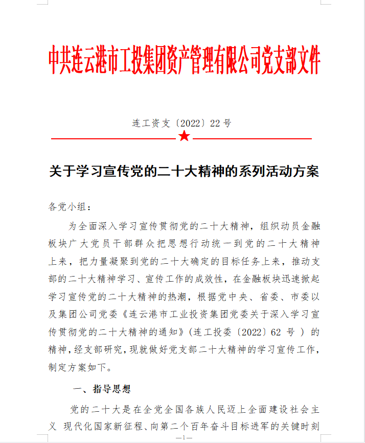 方案和意見提出,為全面深入學習宣傳貫徹黨的二十大精神,組織動員金融板塊廣大黨員干部群眾把思想行動統(tǒng)一到黨的二十大精神上來,把力量凝聚到黨的二十大確定的目標任務上來,推動支部的二十大精神學習、宣傳工作的成效性,在金融板塊迅速掀起學習宣傳黨的二十大精神的熱潮。
