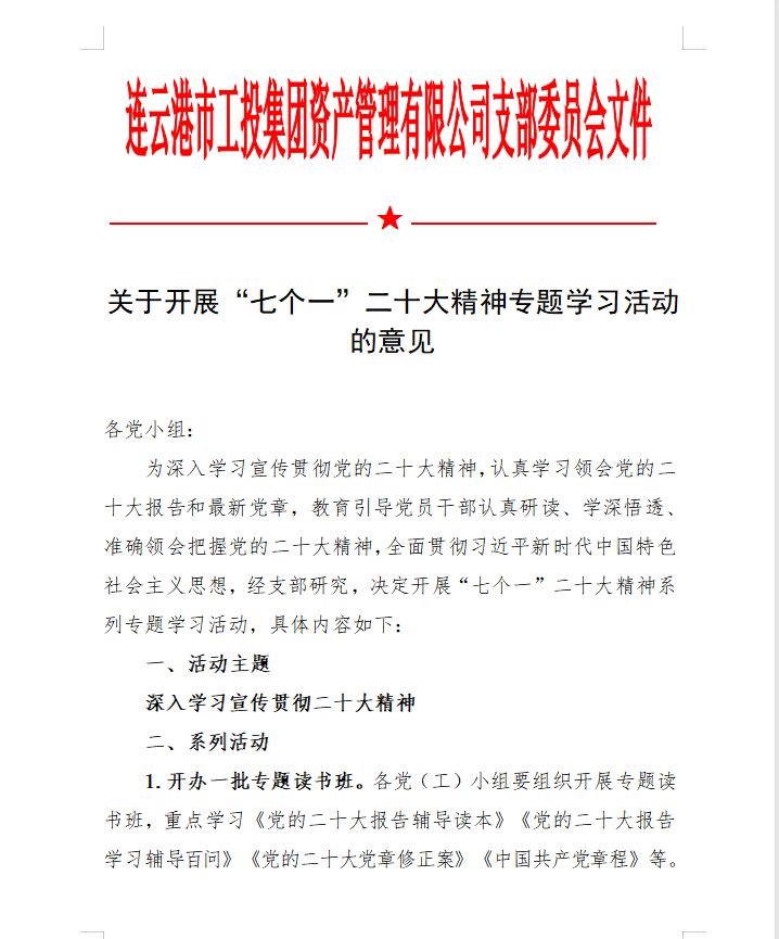 為在金融板塊快速掀起學習宣貫黨的二十大精神熱潮,支部精心組織、積極籌劃,完善學習方案,創(chuàng)新學習教育形式,豐富黨建活動載體,支部結合公司實際,專門制定《學習宣傳貫徹二十大精神學習方案》、《關于開展“七個一”二十大精神專題學習活動的意見》。