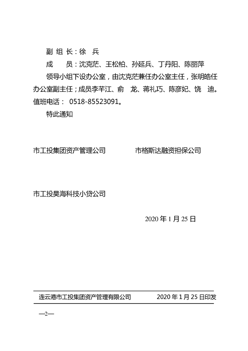關于成立新型冠狀病毒感染的肺炎疫情防控應急工作領導小組的通知