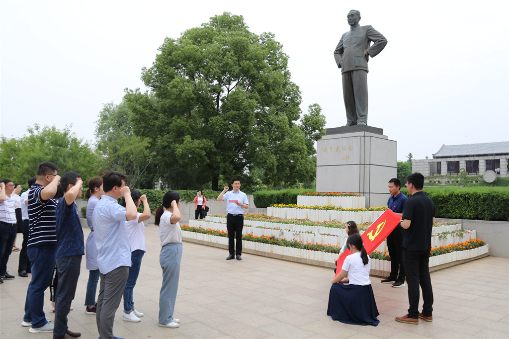 為慶祝建黨98周年,6月16日資產(chǎn)管理公司黨支部組織全體黨員赴淮安周恩來紀(jì)念館、故居及新四軍劉老莊連紀(jì)念園開展“不忘初心,牢記使命”主題紅色教育活動(dòng),深切緬懷一代偉人的豐功偉績(jī),學(xué)習(xí)和弘揚(yáng)老一輩無產(chǎn)階級(jí)革命家的革命情懷和崇高精神。引導(dǎo)公司黨員干部“悟初心、守初心、踐初心”,在新征程中勇?lián)率姑⒆鞒鲂仑暙I(xiàn)。 在紀(jì)念館里,大家仔細(xì)觀看有關(guān)周總理身前留下的物品及資料。在仿西花廳前廣場(chǎng)周總理雕像前,支部組織7名預(yù)備黨員進(jìn)行入黨宣誓,全體黨員面對(duì)周總理雕像重溫入黨誓詞,支部書記胡傳祥號(hào)召大家要學(xué)習(xí)周恩來總理不忘初心、堅(jiān)守信仰,對(duì)黨忠誠,熱愛人民、勇于擔(dān)當(dāng)、鞠躬盡瘁、嚴(yán)于律己、清正廉潔、永遠(yuǎn)奮斗的精神。 隨后,一行人參觀了仿中南海西花廳的辦公場(chǎng)所、起居室、會(huì)客廳,故居等,詳細(xì)了解周恩來為黨和人民事業(yè)不懈奮斗的光輝一生。通過景區(qū)講解員的介紹,了解偉人從立志救國(guó)、從事建黨等早期革命活動(dòng)到新中國(guó)建立后肩負(fù)黨政要職、為促進(jìn)民族團(tuán)結(jié)、國(guó)家發(fā)展以及世界和平作出不朽貢獻(xiàn)的重要?dú)v程。參觀的黨員干部們真切地感受了周恩來總理鞠躬盡瘁、無私奉獻(xiàn)、廉潔奉公、全心全意為人民服務(wù)的精神。下午,一行人到達(dá)劉老莊連紀(jì)念園參觀了紅星廣場(chǎng)、砥柱、烈士墓碑、烈士紀(jì)念碑、將軍墓、烈士紀(jì)念館等,認(rèn)真了解了劉老莊八十二烈士的英勇事跡和紀(jì)念園內(nèi)一草一木、一磚一瓦的歷史由來。 通過參觀學(xué)習(xí),大家紛紛表示,要以周恩來總理和革命先烈為楷模,以高尚的道德品行約束自己,嚴(yán)守人生底線,加強(qiáng)人格修養(yǎng),保持高尚情操,追求崇高人生,充分發(fā)揮黨員干部的先鋒模范作用,以昂揚(yáng)的姿態(tài)在新時(shí)代的征程上努力奮斗,以奮發(fā)有為的精神狀態(tài)和求真務(wù)實(shí)的工作作風(fēng)投身到工作中去。 (資產(chǎn)管理公司黨支部宣) |