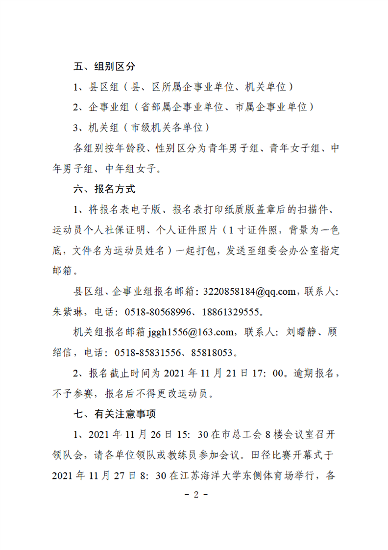 連云港市第二屆職工健身運(yùn)動(dòng)會(huì)田徑比賽的補(bǔ)充通知