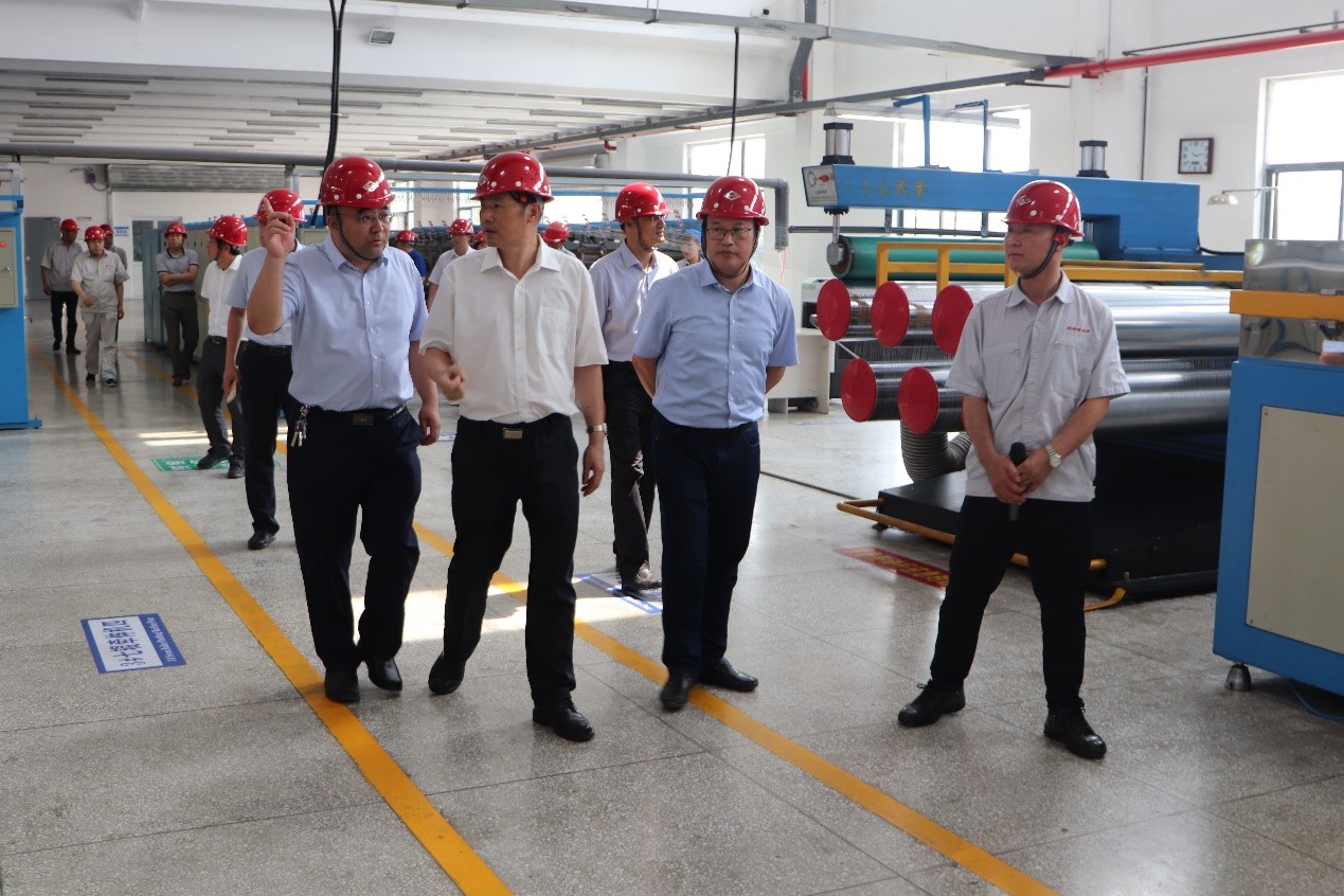 神特公司董事長張斌、總經(jīng)理韓立新分別就企業(yè)發(fā)展情況和生產(chǎn)經(jīng)營情況向調(diào)研組作了匯報(bào)。調(diào)研組一行參觀了企業(yè)產(chǎn)品展廳和二期生產(chǎn)線。