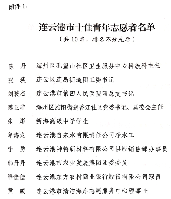 近日,公司員工李勇被共青團(tuán)連云港市委、連云港市文明辦、連云港市志愿者協(xié)會授予“連云港市十佳青年志愿者”稱號。這是對其“無償獻(xiàn)血,大愛無疆”的肯定,也是對其一種激勵(lì)。 (神特宣)