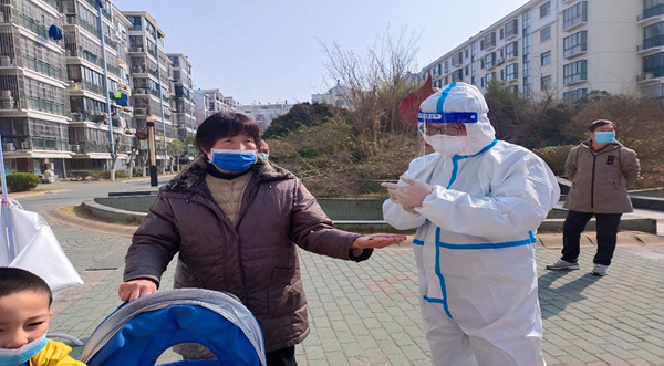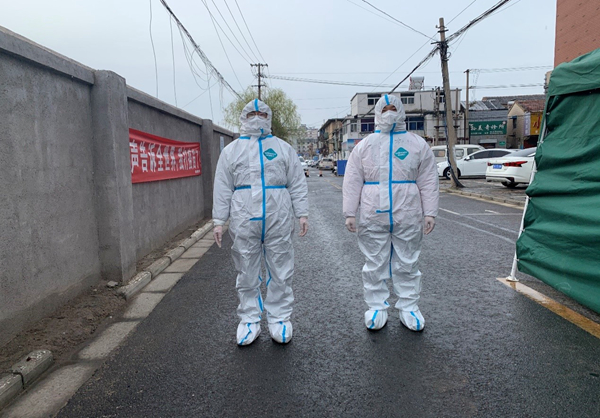 抗疫是場接力賽,眾志成城才能取得勝利。3月18日,參加集團抗疫志愿服務(wù)的伏達、徐宏亮接過范益楊、李夢達的“接力棒”,一往如前,奮斗在抗疫一線。清晨,冒著些微冰雹加小雨,通過交通管制重重關(guān)卡,兩人準時到達結(jié)對小區(qū)開展志愿服務(wù),一會兒在卡口執(zhí)勤,一會兒維護核酸檢測秩序,一會兒巡邏檢查路邊商戶是否暫停營業(yè)……愣是在寒風中,忙出一身汗。