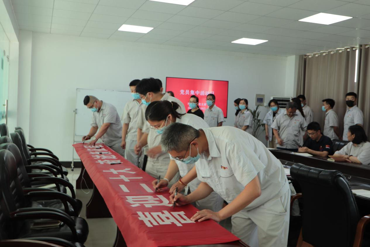 在七一即將來臨之際,公司組織全體黨員開展“喜迎二十大,奮進(jìn)新征程”黨員集中活動(dòng)日?;顒?dòng)中,與會(huì)黨員集體宣誓,重溫入黨誓詞,回憶入黨初心,并在條幅上簽名,作出鄭重承諾。公司黨支部表彰一批優(yōu)秀共產(chǎn)黨員,激勵(lì)全體黨員守初心、勇?lián)姑⒐?jiān)克難、建功立業(yè)。