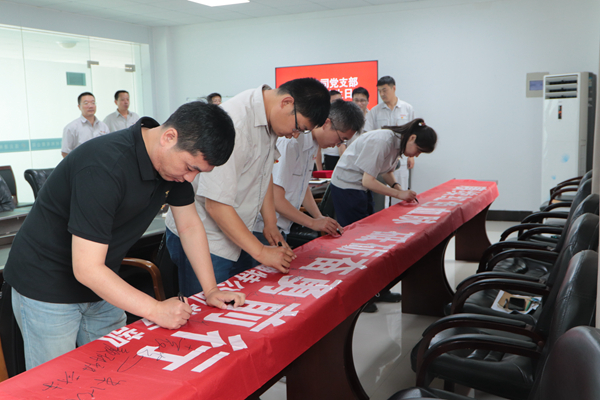 在七一來(lái)臨即將來(lái)臨之際,公司開(kāi)展集體政治生日活動(dòng),組織全體黨員賡續(xù)紅色血脈,砥礪奮勇前行。活動(dòng)中,與會(huì)黨員重溫入黨誓詞,回憶入黨初心,并在條幅上簽名,作出鄭重承諾。公司黨支部對(duì)5名優(yōu)秀共產(chǎn)黨員進(jìn)行表彰,激勵(lì)全體黨員學(xué)先進(jìn)、作表率,以優(yōu)秀的成績(jī)向建黨100周年華誕獻(xiàn)禮。