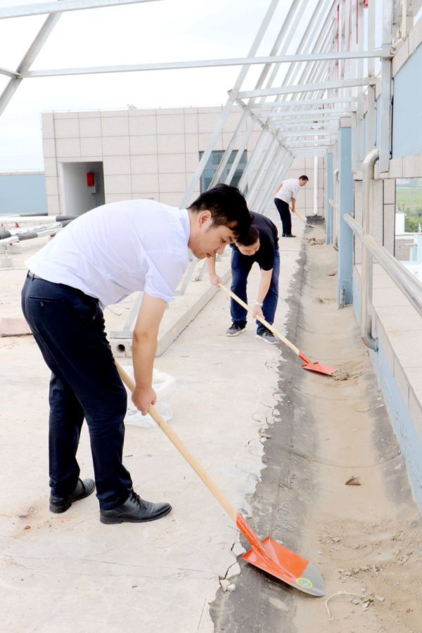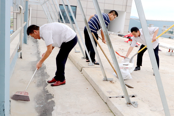 為凈化、美化公司辦公樓樓頂環(huán)境,消除積水隱患,8月26日上午,公司組織黨員、團員青年志愿者開展了專項清理整治行動。志愿者不畏艱辛,對樓頂進行了細致清掃,認真疏通排水口,力爭陰雨天氣不再出現積水現象。(神特宣)