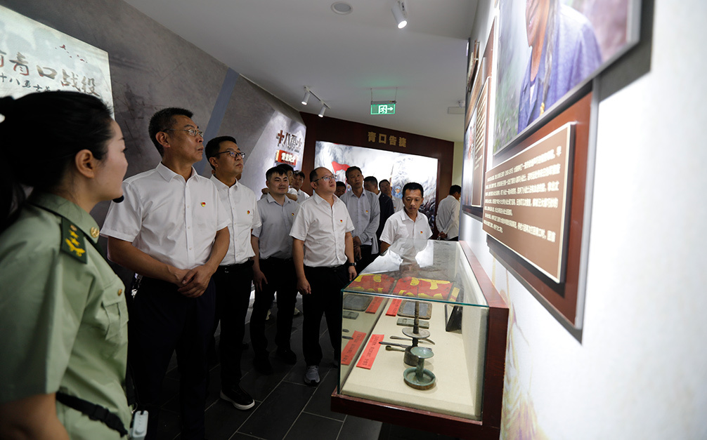 進入紀念館后,大家跟隨講解員的生動講述,通過一張張泛黃的歷史圖片、一件件承載記憶的實物展陳,深入回溯了抗日戰(zhàn)爭時期青口“十八勇士”為掩護大部隊撤退、與日寇殊死搏斗的壯烈事跡。面對敵眾我寡的絕境,十八名戰(zhàn)士以血肉之軀筑起鋼鐵屏障,他們堅貞不屈、視死如歸的精神深深震撼了在場的每一位黨員。