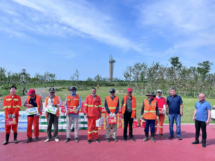 在現(xiàn)場,為他們送去礦泉水、八寶粥、冰紅茶、牛奶等防暑降溫物品和生活用品。莊董事長與員工們親切交談,關(guān)心詢問員工作和生活情況,并叮囑要合理調(diào)整工作時間,妥善做好員工高溫防暑降溫工作。接到領(lǐng)導遞到手上的慰問品,聽著領(lǐng)導的問候和囑咐,員工們心懷感激,競相表示要克服酷暑高溫,堅守崗位,盡職盡責,以飽滿的工作熱情為企業(yè)發(fā)展貢獻力量。(孫祥艷)