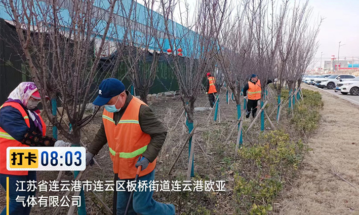 及時清理落葉雜物。入春前,天氣干燥寒冷,大風降溫天氣增多,各種喬灌木的樹葉陸續(xù)落在綠化帶中,班組安排人員,左手拿耙,右手網(wǎng)兜,對草坪落葉及時清理,對道路中間以及兩側(cè)的過密枝,枯死枝,病弱枝、徒長枝,進行修剪工作,促進平衡,保持優(yōu)美樹形,修剪遮擋交通標識以及行人視線的樹枝,消除道路通行安全隱患。
