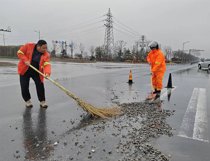 聚焦“兩個(gè)作用”、提升應(yīng)急處理。支部堡壘與先鋒表率作用有力得以彰顯。該分公司黨員生產(chǎn)骨干張學(xué)軍、徐習(xí)東、陸永柱,巡現(xiàn)時(shí)發(fā)現(xiàn)轄區(qū)道路現(xiàn)場(chǎng)車輛拋灑石子,第一時(shí)間安全迅速奔赴清理路段,與同事齊心合力揮動(dòng)手中大掃把,清掃石子近1000多米長(zhǎng),轉(zhuǎn)運(yùn)清倒30余車,工作中爭(zhēng)先恐后場(chǎng)景成為雨中道路上最美感人畫面。(楊波)