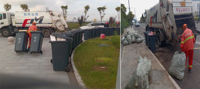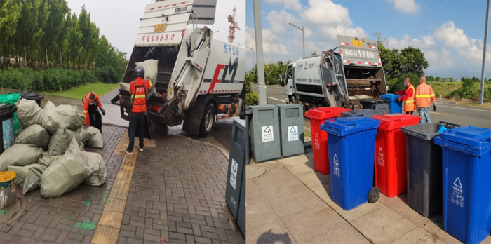 節(jié)日期間,環(huán)衛(wèi)分公司每天出2輛清運車輛,隨車4名環(huán)衛(wèi)推桶工人、2名駕駛員,對徐圩新區(qū)住宅小區(qū)、企業(yè)(單位)及公共地段60個垃圾收集點的440個垃圾分類桶、200個果皮箱及400個垃圾包進行清收。每日清收垃圾約20余噸,并及時將垃圾轉(zhuǎn)運到垃圾中轉(zhuǎn)站。